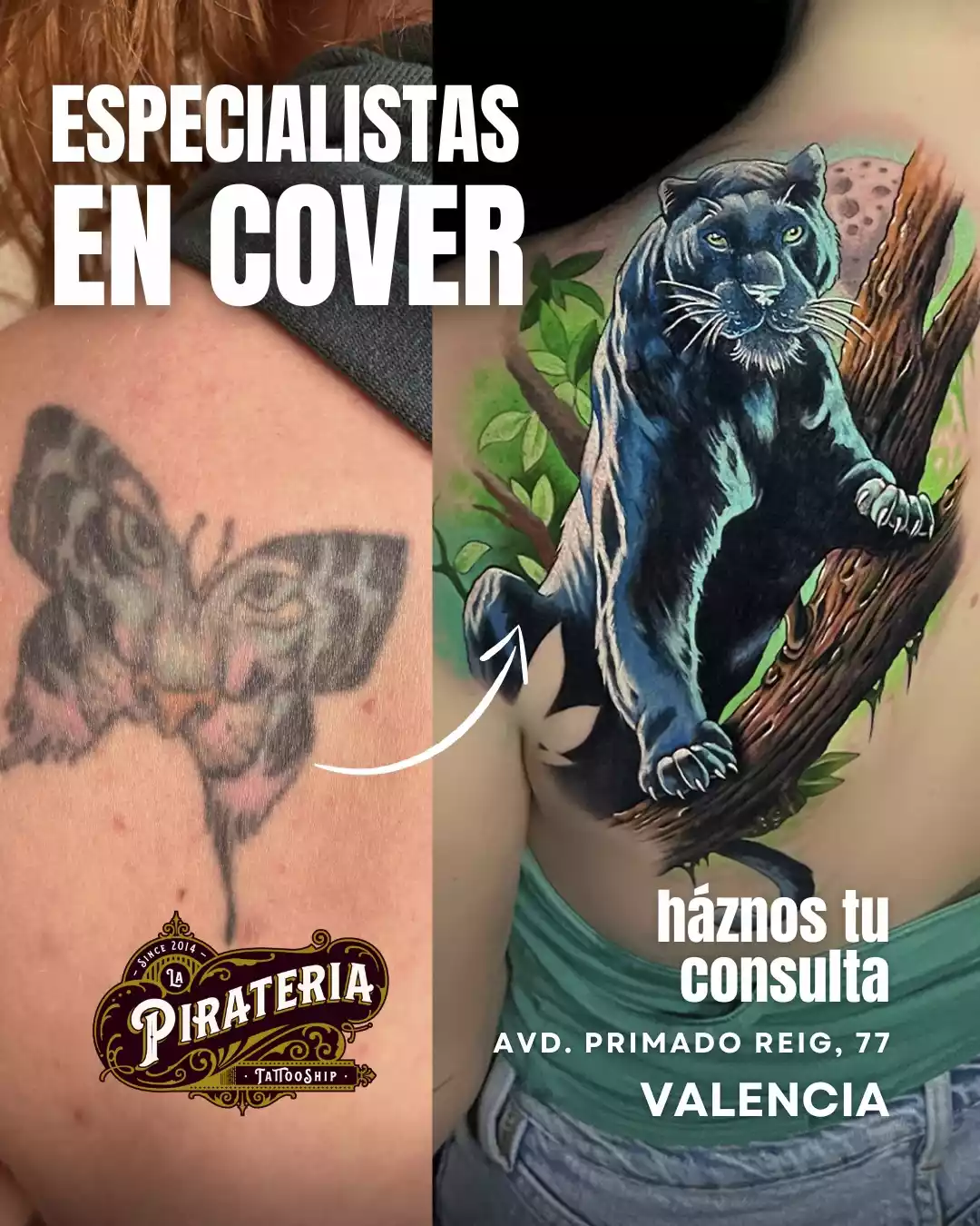 En la Piratería Tattoo tenemos un equipo de tatuadores especializados en cover up, si llevas tiempo planteándote cubrir un tatuaje porque ya no te sientes identificado con él o técnicamente no cumple con tus expectativas, podemos ayudarte a conseguir el tattoo que siempre quisiste.